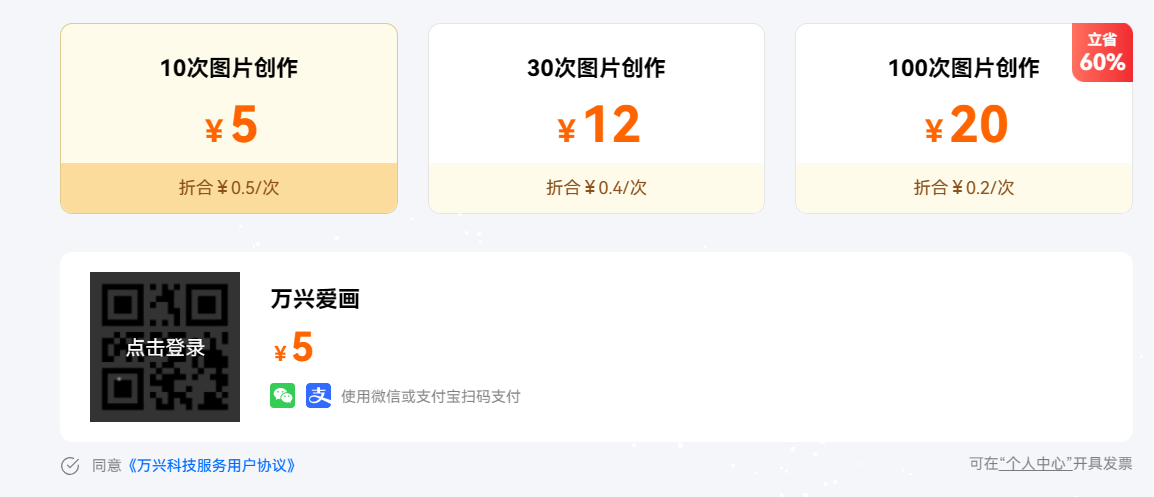万兴爱画设置了多档定价,三种套餐选择,根据您的需求进行购买。