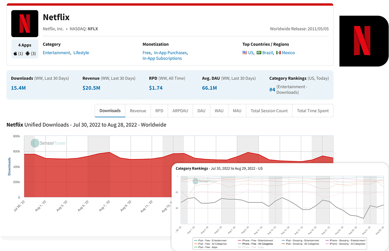 Sensor Tower 提供行业领先的应用商店优化数据和见解,监控您的应用在市场上的表现。您可以定制仪表盘,追踪每日下载量、定期收入报告、用户情绪变化,并深入了解竞争对手的表现趋势。