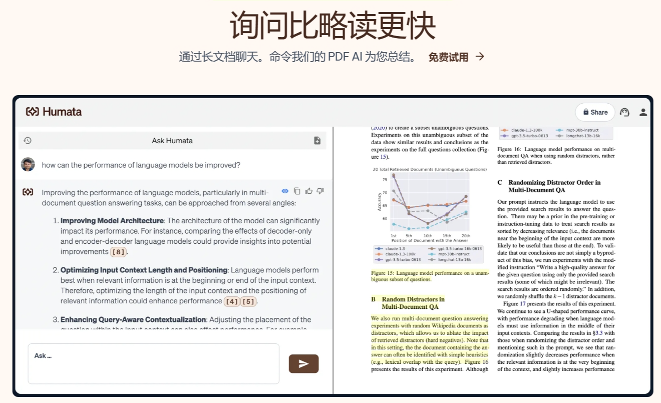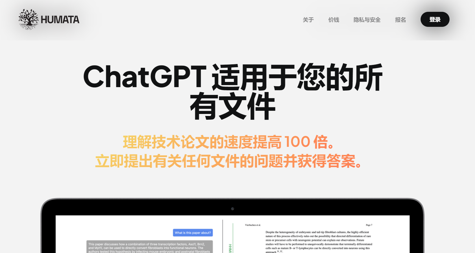 Humata可以回答与文件相关的问题,用户可以即时获得容易理解的答案,提高对文件内容的理解和应用能力。