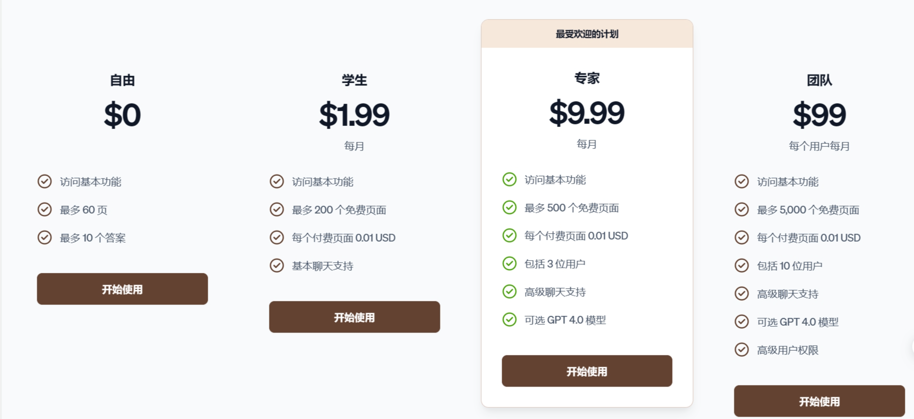 1. 付费计划在达到 200 页后每页额外收费 0.01 美元