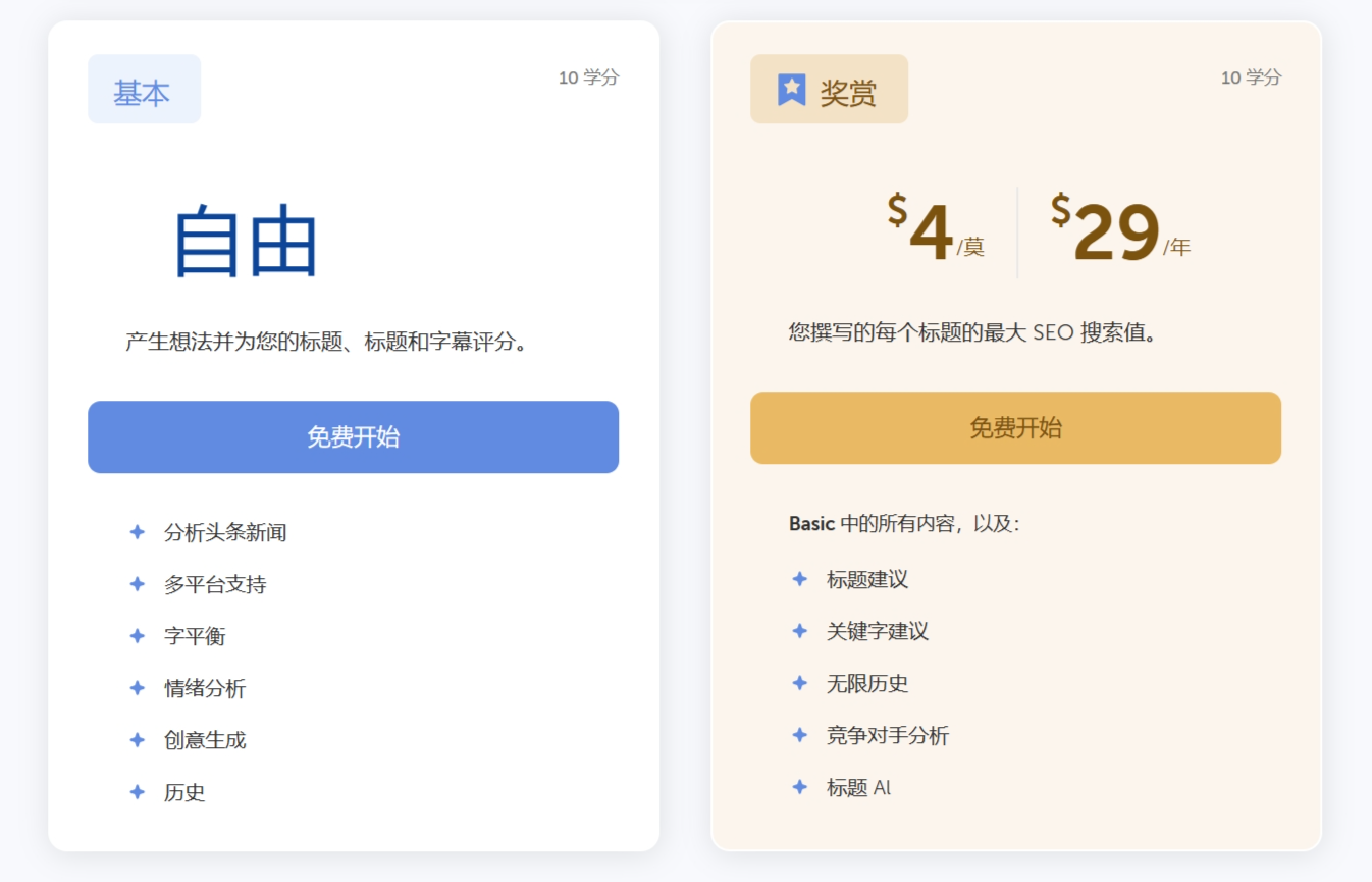 免费版:包含分析头条新闻、多平台支持、字平衡、情绪分析、创意生成等功能。