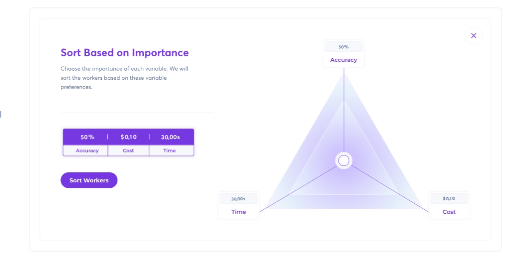1. 手动或通过 API 调用上传文档,然后定义项目优先级(质量、成本和速度)。