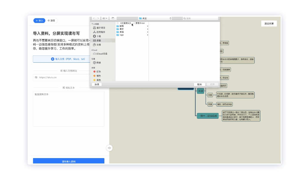 同时实现读与写,一屏就可以实现一边阅读资料一边做思维导图,不需要来回切换窗口,支持多种格式的资料上传、储存,学习工作更高效!