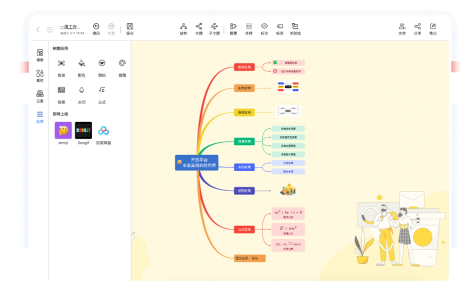 接入更多外部应用,已接入公式,图标,插图,表情包等应用,还有更多外部应用接入中...