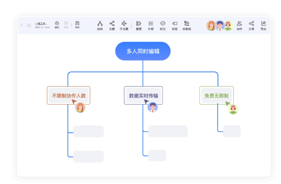 团队效率,超乎想象,多人同时查看和编辑一个思维导图,头脑风暴,工作安排,小组研究无缝协作。