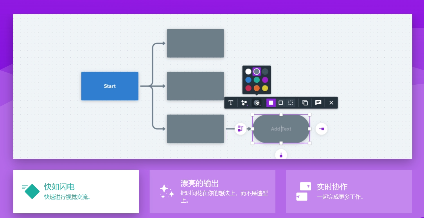 Whimsical提供多种图解功能,包括流程图、界面设计图、便利贴和脑图等,用户可以根据需求选择适合的功能进行绘制。