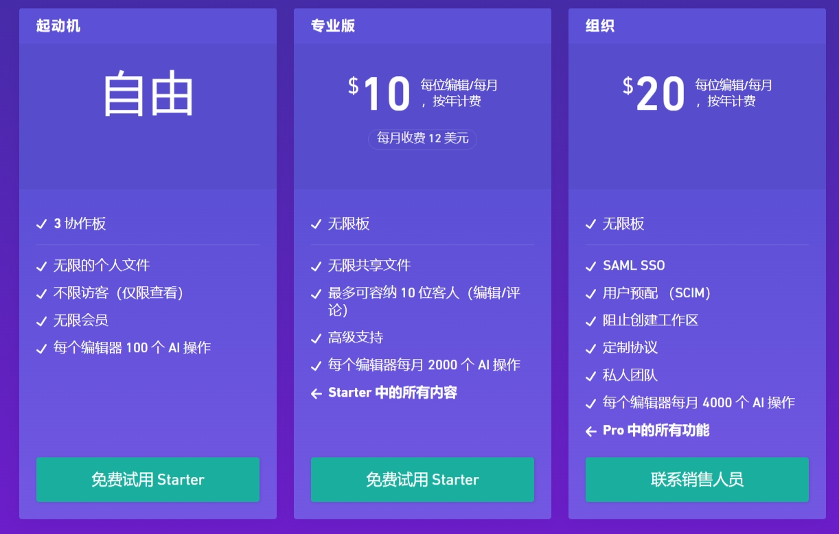 Whimsical设置了多档定价,可以满足您的一切办公需求。