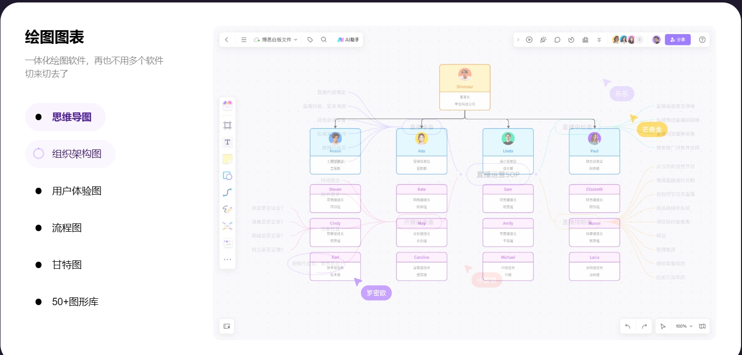 产品适用于各种办公场景,可以在远程协作、头脑风暴、在线教学、在线会议等方面发挥作用。