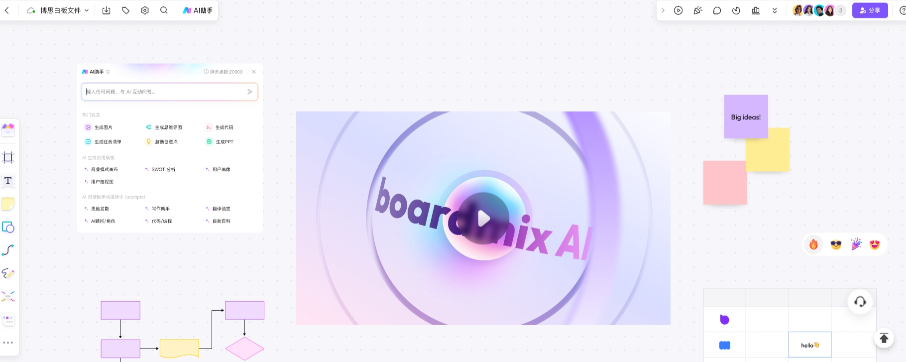 使用Boardmix的AI功能,用户可以实现从创意内容到表达形式的完整输出,提高工作效率和智能体验。