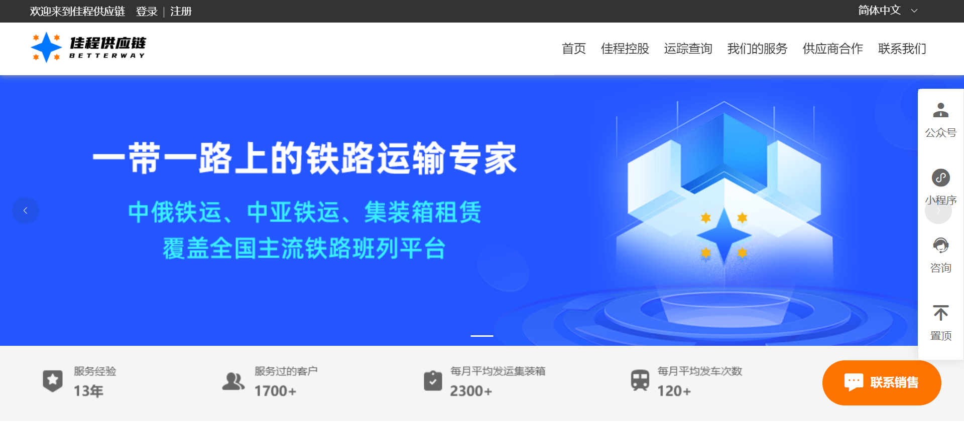 佳程供应链是一家成立于2011年的专注于跨境物流供应链的创新性服务企业。其遍布全球的子公司分布在金华、辽宁、济南、义乌、苏州、成都、武夷山、广州、上海、西安、香港、俄罗斯莫斯科、克拉诺亚尔斯克、哈萨克斯坦阿拉木图以及新加坡等地。