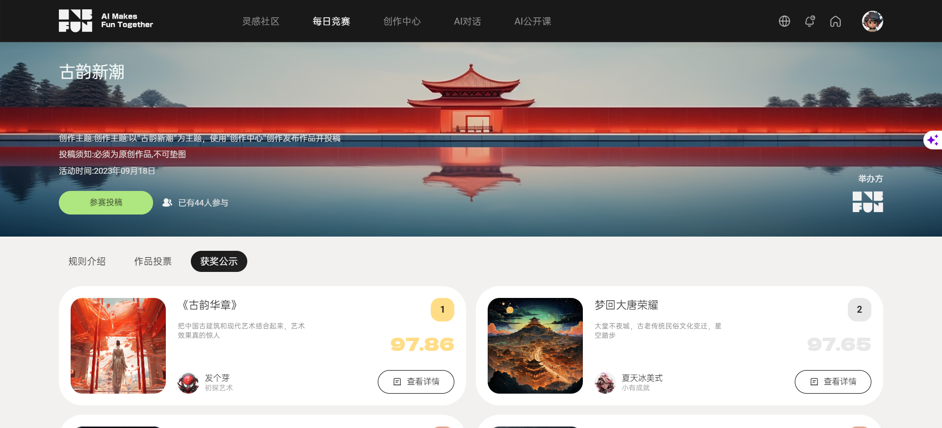 利用竞赛激发创作热情,让用户以特定主题或创作主体的形式参与绘画竞赛。其他用户可以投票支持自己喜爱的作品,票数高者可以赢得奖金或其他奖励,鼓励更多人积极参与和分享作品。