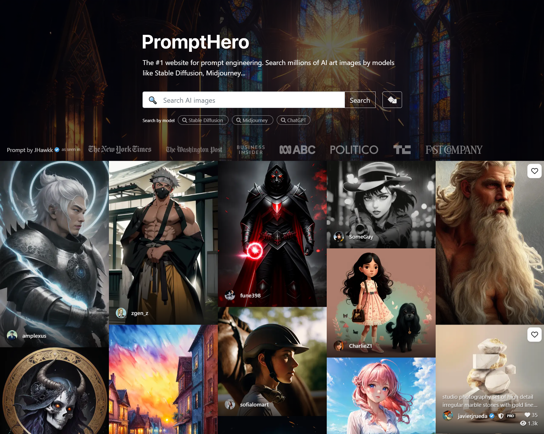 3. 多样表现:以 Stable Diffusion 和 Midjourney 等模型为特色,Prompt Hero 提供多种艺术风格和技巧,迎合各种偏好。