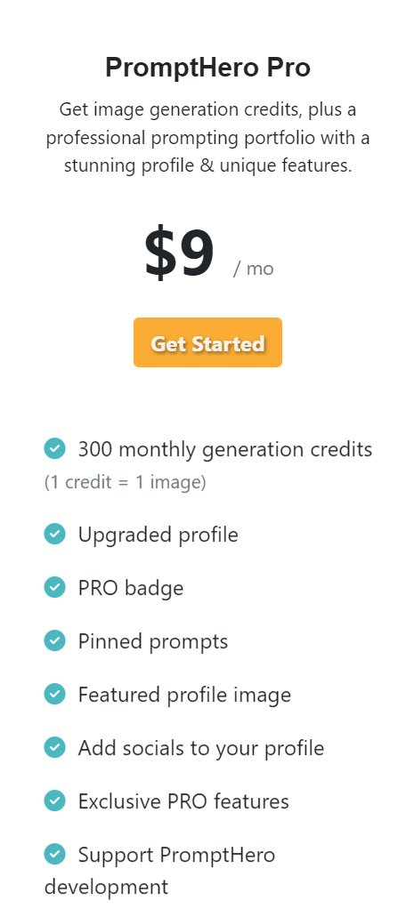 PromptHero 提供免费使用,但也可以选择升级到进阶版,解锁更多功能。通过 Pro 版,您可以获得图像生成积分,并无需安装任何软件即可使用诸如稳定扩散等 AI 模型。此外,Pro 版还拥有构建专业提示组合并使其脱颖而出的独特功能。