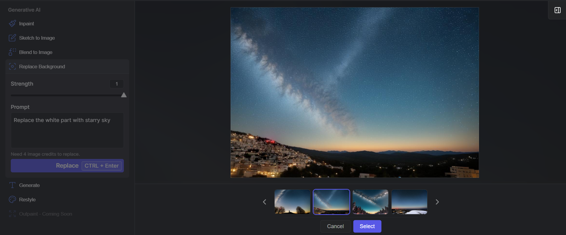 Getimg 中另一个令人惊叹的工具是 AI 图像编辑器。该工具允许用户使用文本编辑图像或生成照片中缺失的部分。用户可以利用AI修复图像中缺失的对象,或更改图像的其他元素。例如,可以擦除图像的某个区域,并告诉AI在空白区域中渲染什么内容。