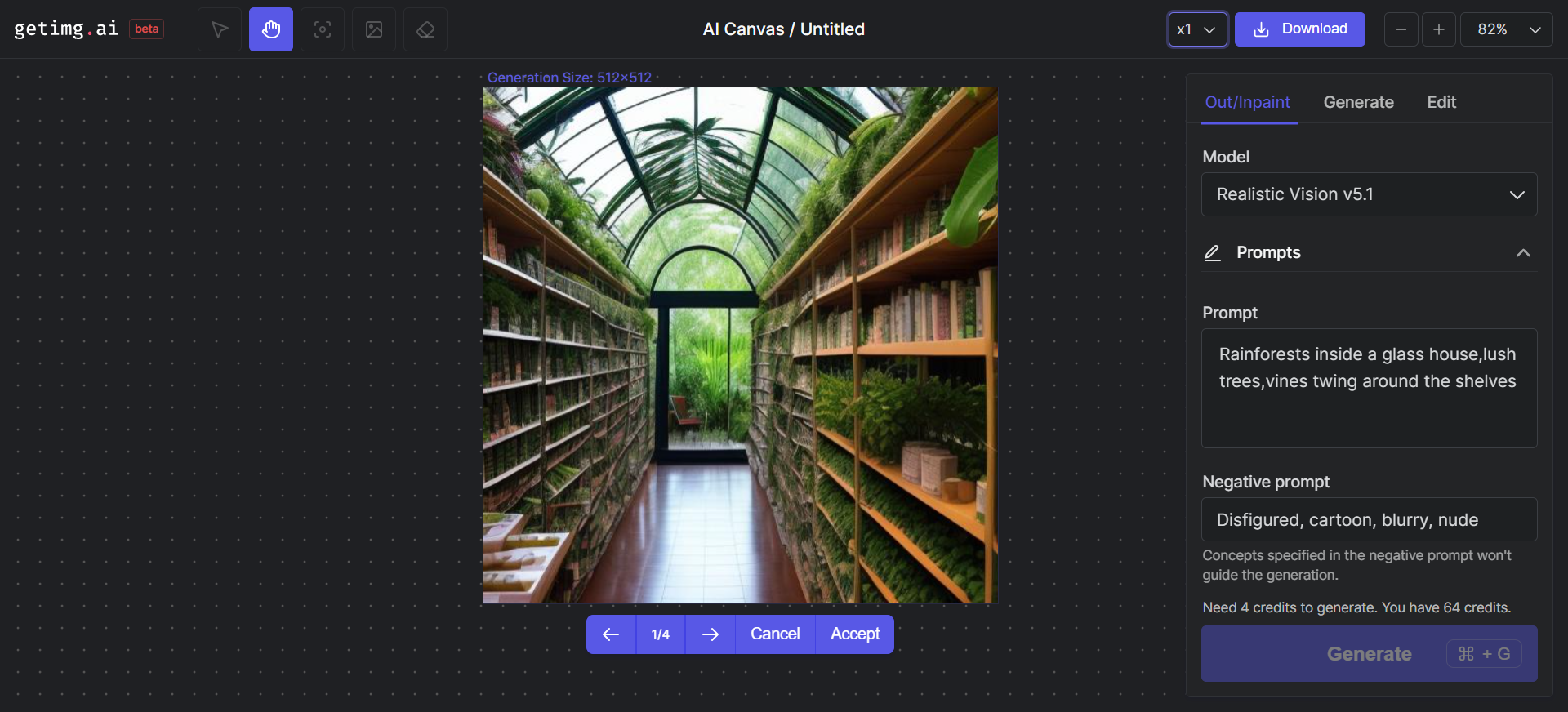 Getimg 可以使用人工智能画布将图片扩展到边界之外,或在无限大小的画布上创建令人惊叹的大型艺术作品。