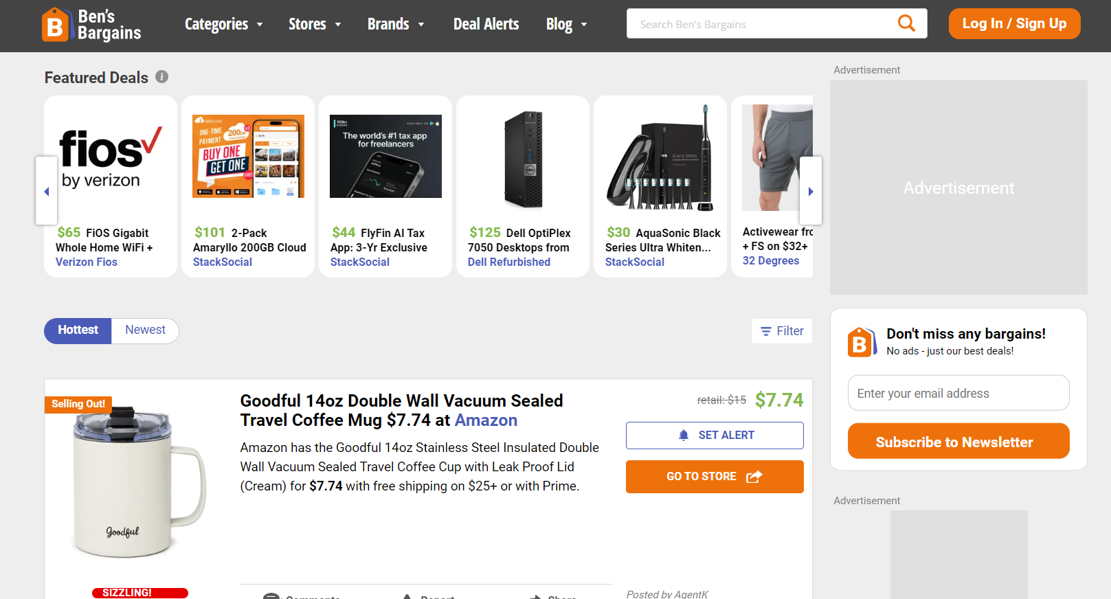 Bensbargains网站是一个以美国为主要流量来源的购物折扣网站。