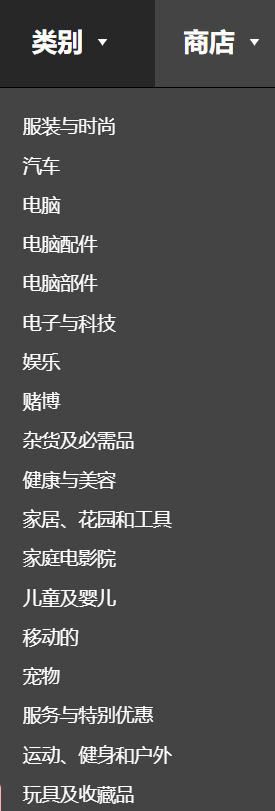 Categories板块:对整个网站涉及的类目进行了划分,主要包括服装类、家居生活类和消费电子类等三大方面。