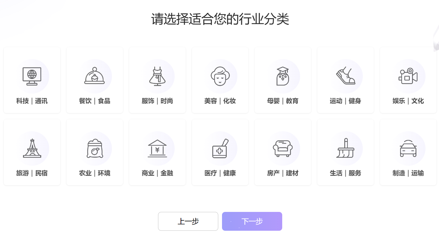 2.选择行业分类,包括市面上所有的行业如科技、时尚、商业等。