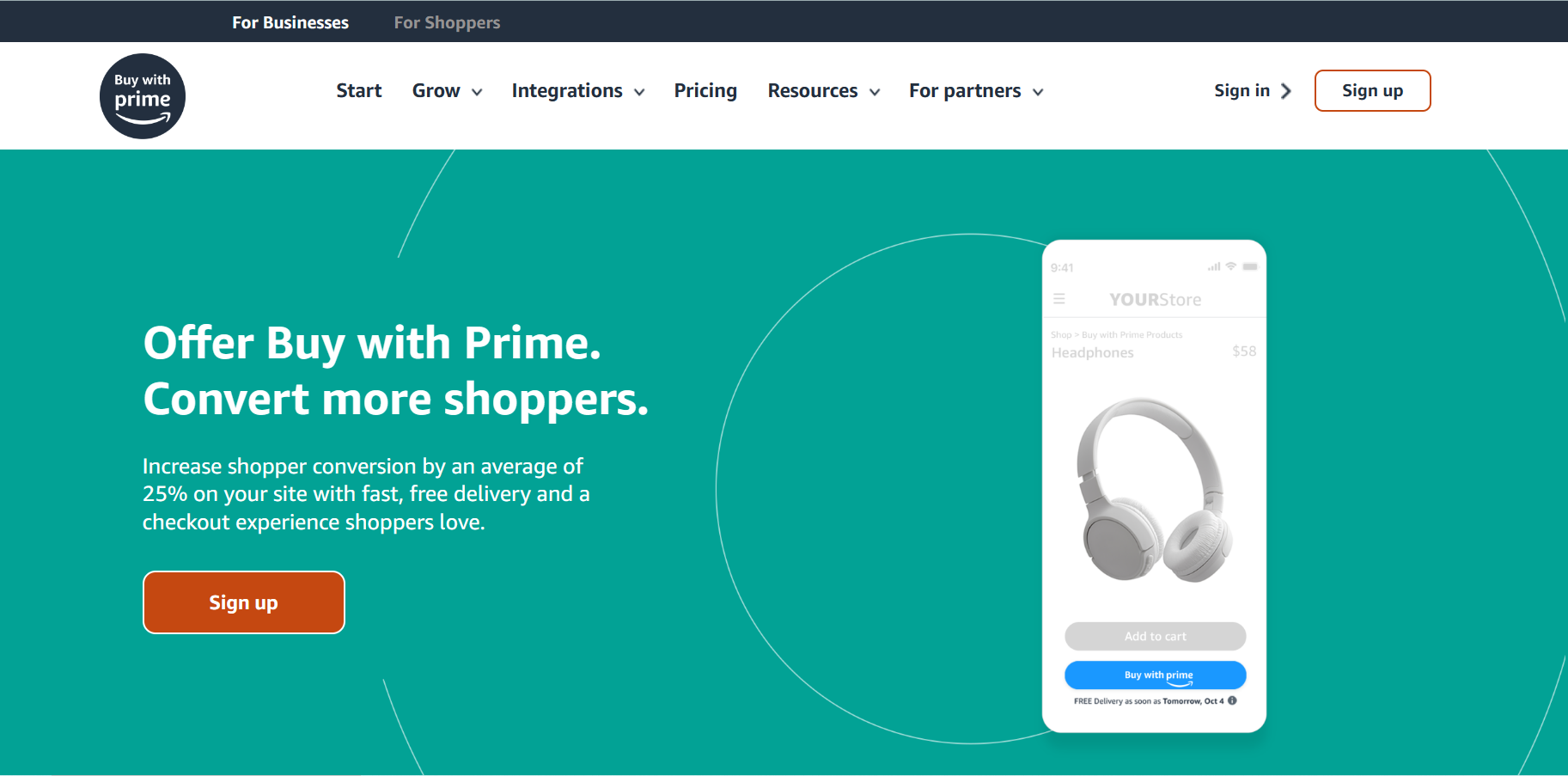 Buy with Prime的推出使卖家能够通过提供数百万Prime会员所喜爱和信任的购物福利来提高转化率,包括快速、免费送货和无缝付款体验。