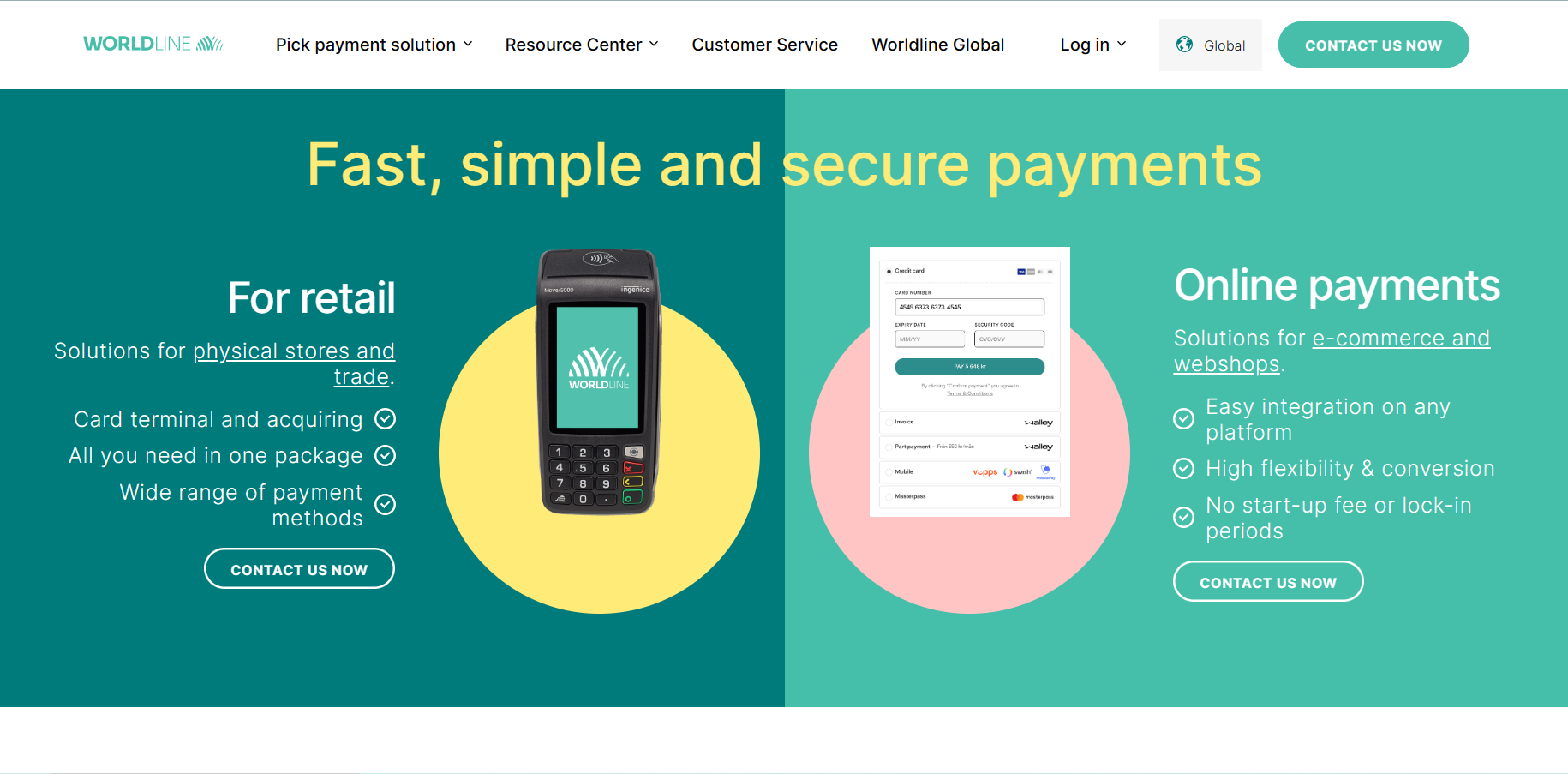 快速,简单,安全的付款,包括零售行业的支付终端和在线支付