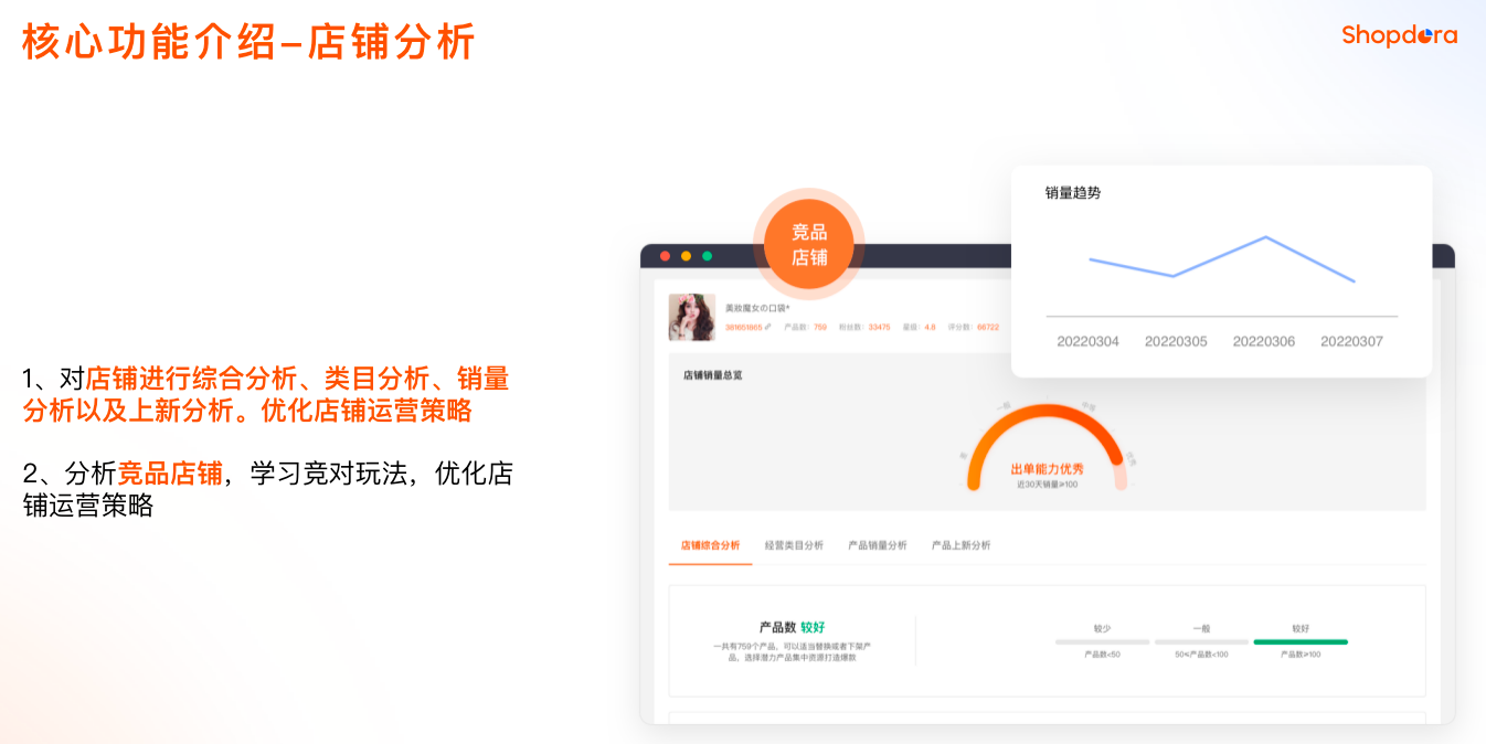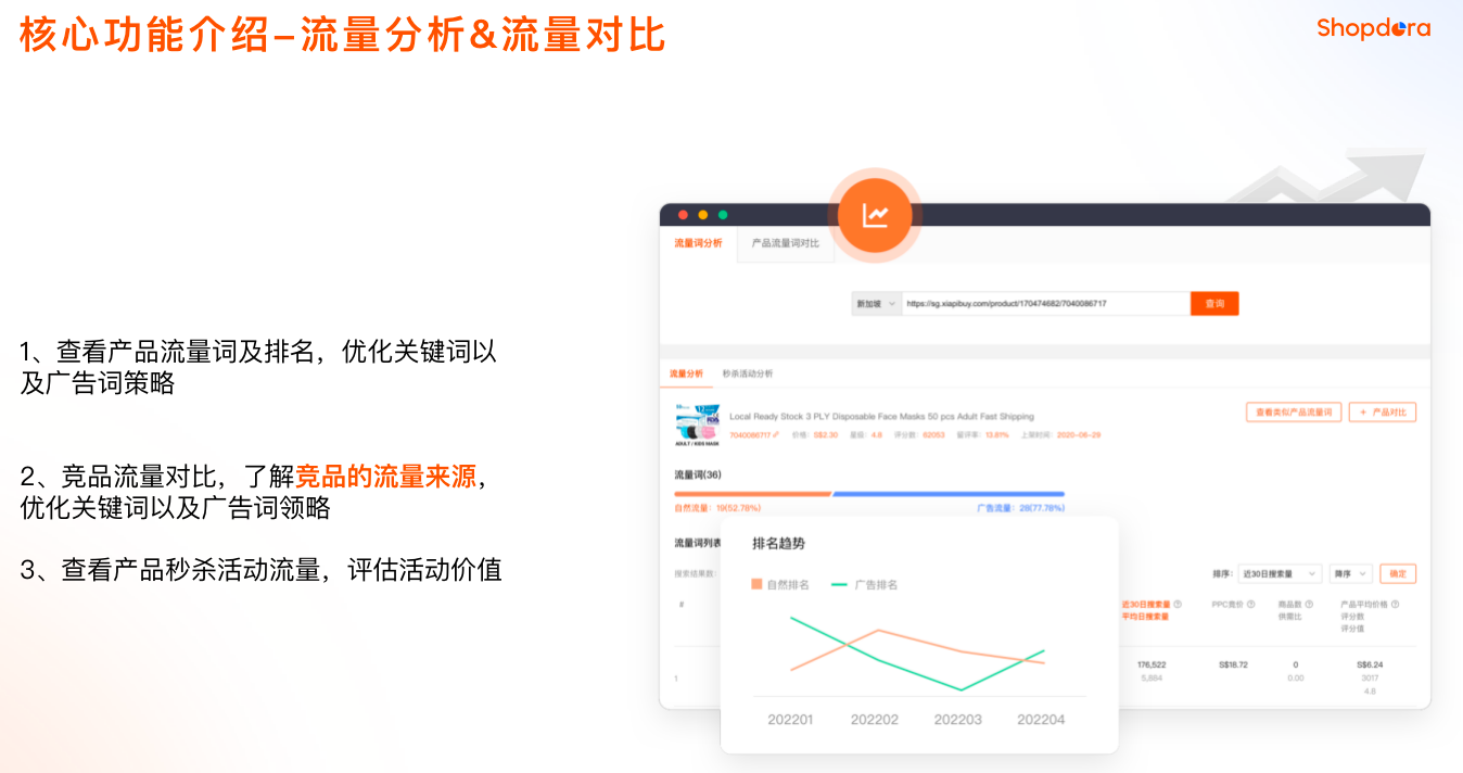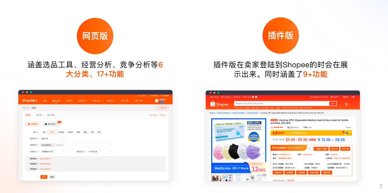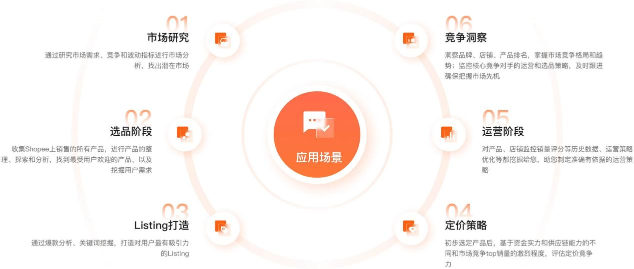 支持Shopee卖家全流程运营,提供一站式选品、竞品分析、流量分析等工具,帮助卖家发掘蓝海、打造爆品。