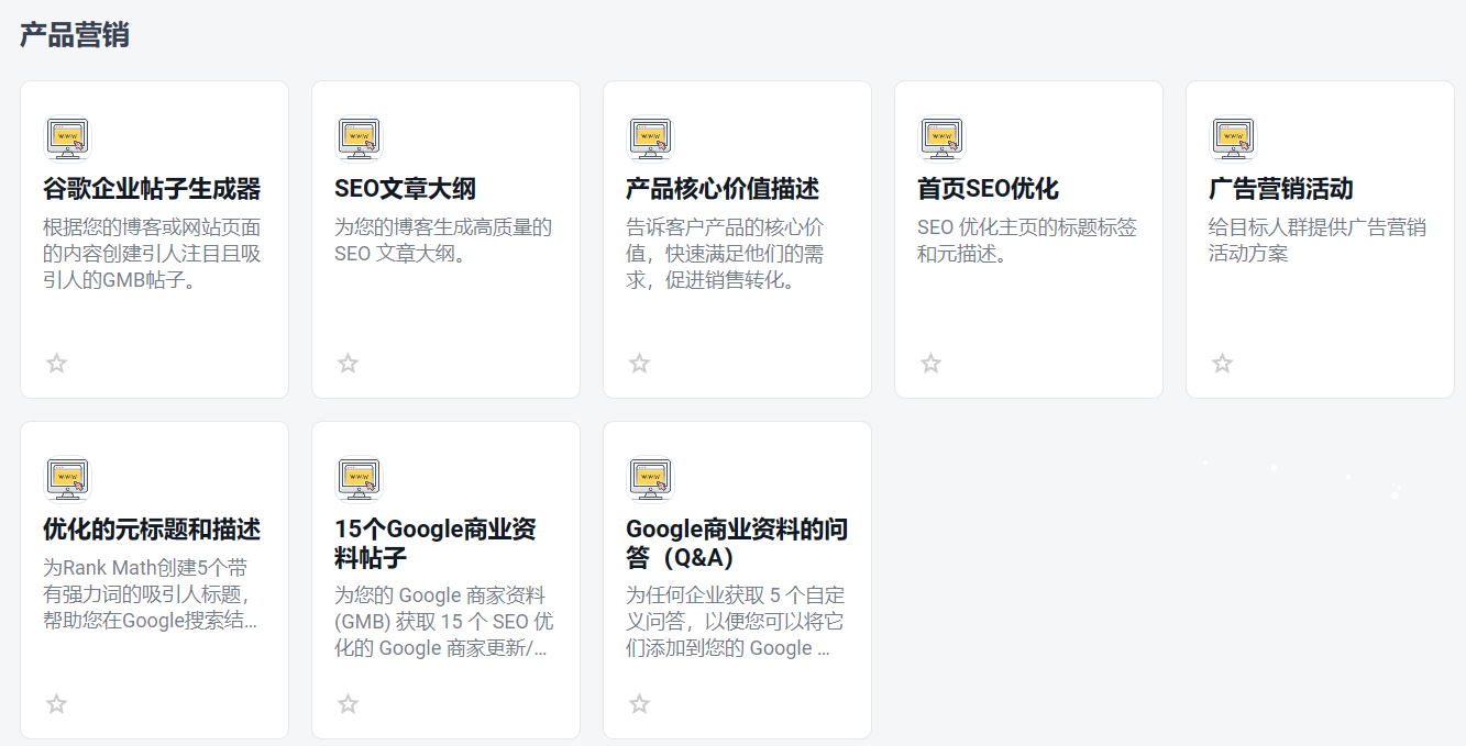 包含独立站所需各类文案,生成品牌口号,商品描述等,让你的站点更出色。