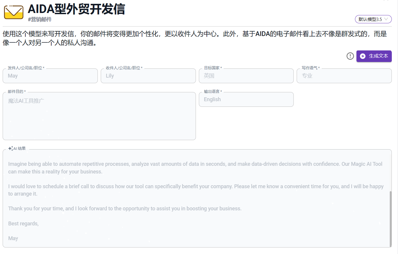 通过邮件进行客户开发等,传播产品和服务信息,促进国际贸易的营销策略。使用这个模型来写开发信,你的邮件将变得更加个性化,更以收件人为中心。此外,基于AIDA的电子邮件看上去不像是群发式的,而是像一个人对另一个人的私人沟通。