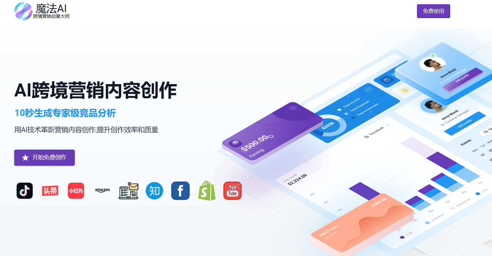 魔法AI是一家专注于生成式 AI 领域的科技公司,致力于用前沿的AI技术来创造内容。成立于2021年,由一批人工智能,算法方面的技术人员组成,主要为跨境电商提供文案及图片,提高点击率和销售转化率,同时为外贸工作者,媒体工作者,办公文员提供办公助手,让工作变得轻松高效。