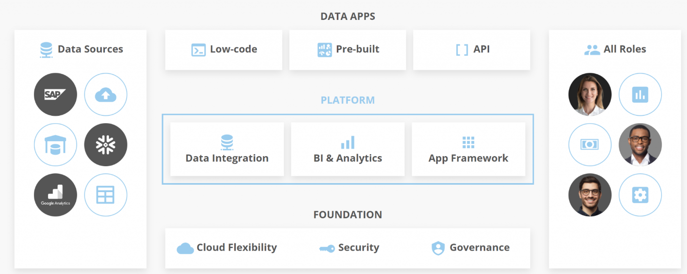 使用个性化数据权限将安全性添加到行级别,2FA、SSO 集成、事件记录和 BYOK 加密,在查看数据时沿袭并执行数据影响分析。通过内容认证确保数据质量,自动后端扩展到数十亿条记录和数千名用户。