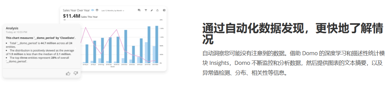 虹科Domo是一款将所有数据、BI和工作流都整合到应用程序中的综合性商业智能(BI)分析工具,Domo具有云灵活性、能够进行异常管理、嵌入式分析、拥有世界一流的数据治理和安全性。从可视化到数据应用程序,Domo帮助企业简化数据集成、提供数据洞察力、优化业务决策、实现多场景数据共享,助力企业数据上云与数字化转型升级!