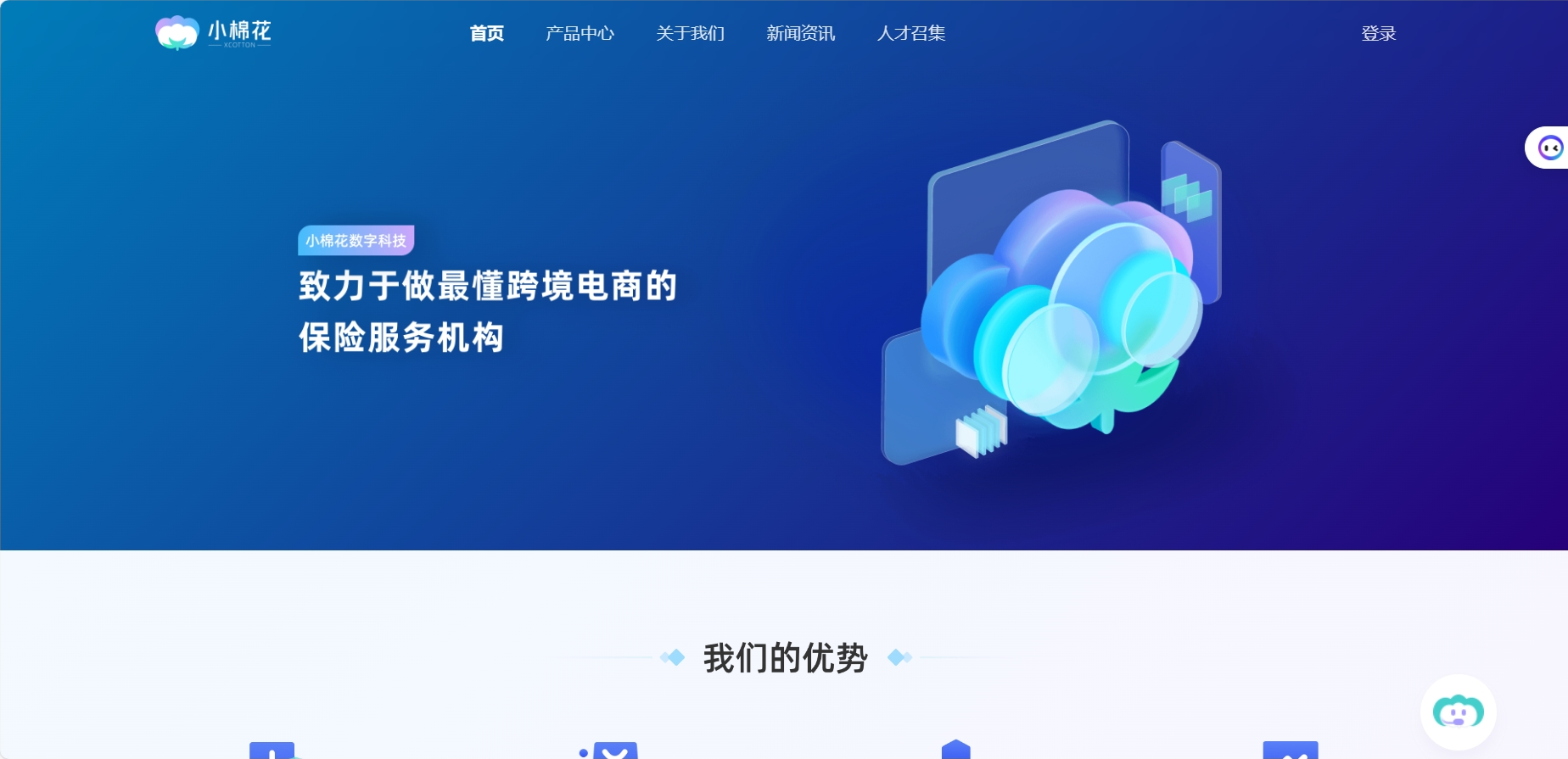 小棉花数字科技公司成立于2022年,是小雨伞保险经纪旗下专注跨境电商保险产品研发设计、推广运营、售后服务的一站式保险服务平台,致力于通过创新性的保险产品和科技服务,帮助跨境电商降低风险损失。