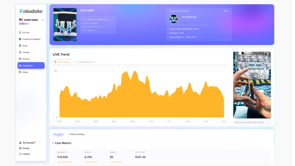 Kalodata提供TikTok爆品挖掘、达人建联、直播录屏录像、竞品店铺追踪、广告投流分析、短视频脚本导出及AI在线改写视频脚本等数据服务,支持查看国家/类目、店铺、商品、达人、直播、短视频等多维度数据,致力于为全球用户提供更快、更全、更准确的TikTok电商数据,助力TikTok从业者业务增长。