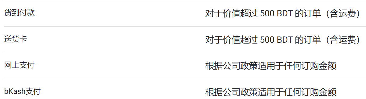 孟加拉国各地送货上门,付款方式灵活 ;