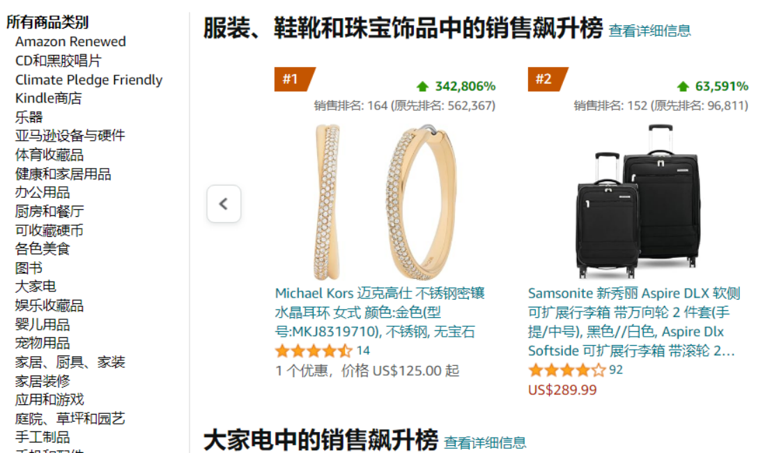 跨类别榜单:亚马逊销售飙升榜涵盖了各个商品分类,从图书到电子产品再到家居用品等,让用户可以跨领域地浏览销售增长最快的商品。