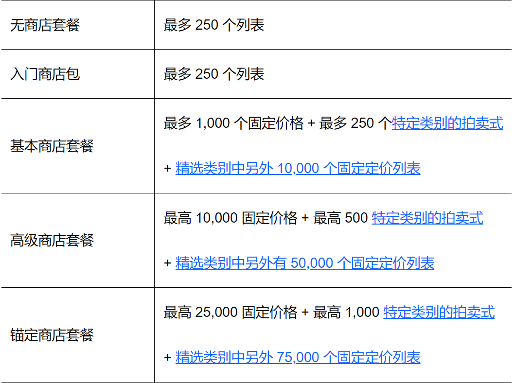 eBay平台费用主要包括刊登费和成交费,具体金额因国家而异。此外,根据店铺级别的不同,还有月租费,价格从15.95美元/月到290.05美元/月不等。