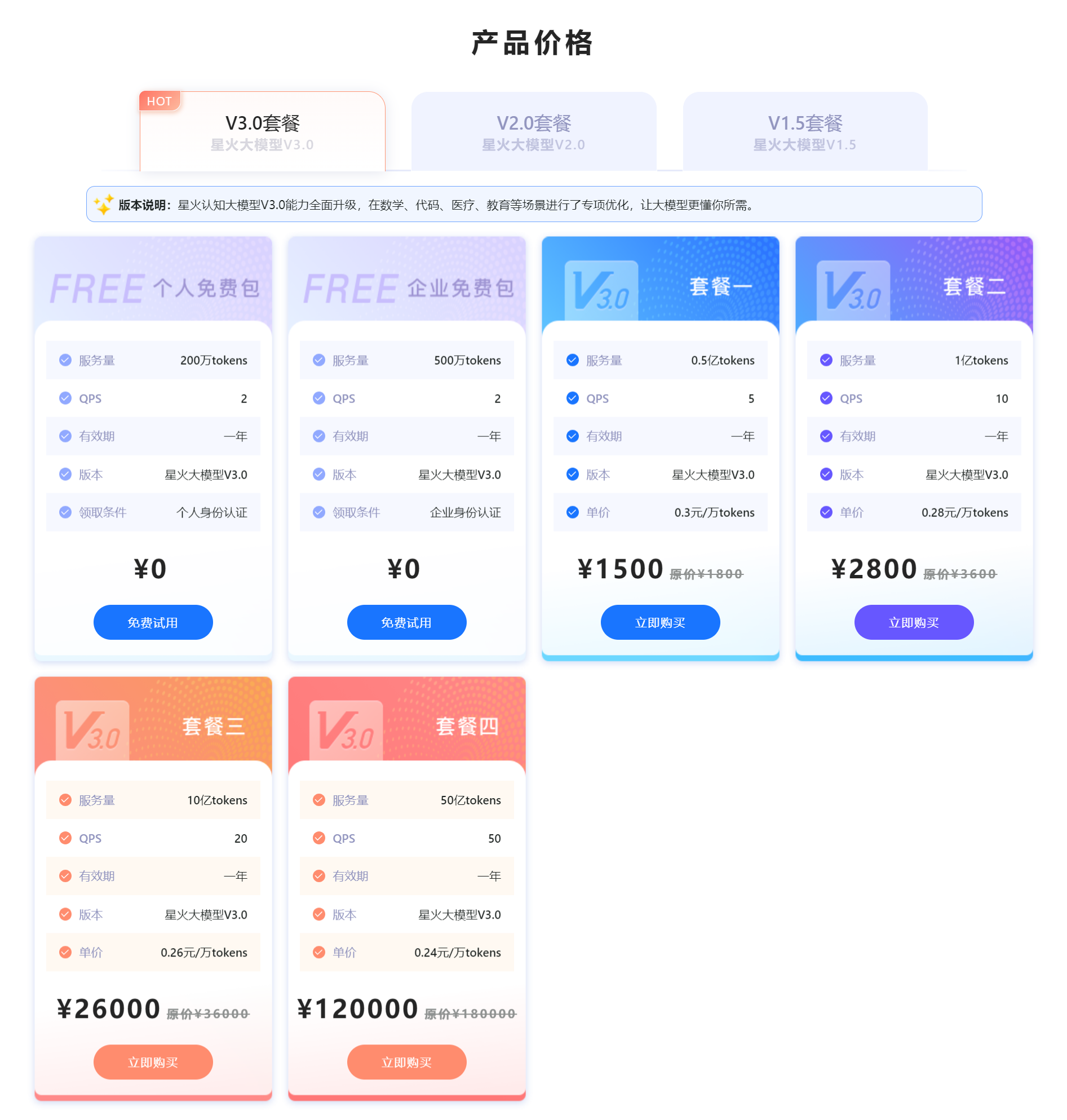更详细的价格信息,可以查看讯飞星火认知大模型官网信息