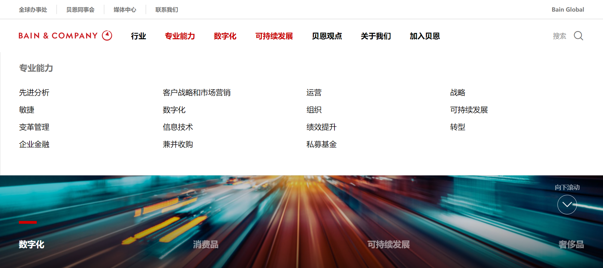 作为一家引领行业的管理咨询公司,贝恩专注于为全球范围内的企业高管提供高度专业化和全面化的管理咨询服务。这些服务涵盖了战略规划、市场营销、组织架构、运营管理、科技应用、数字化转型、企业财务、并购等多个领域。