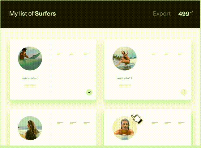 导出进行推广:inBeat 简化了推广活动的准备过程,用户可以轻松地将他们筛选出的影响者信息一键导出。这一功能不仅节省了时间,还提高了推广活动的效率,使用户能够更快地启动与选择的影响者的合作。