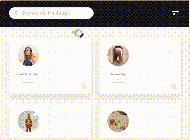 inBeat提供强大的影响者数据库,支持通过关键指标和关键词灵活搜索,帮助用户招募符合要求的影响者。