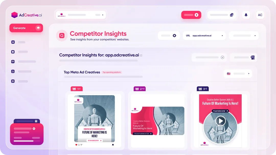 利用 AdCreative.ai 的人工智能分析和揭示不同平台上表现最佳的广告,了解竞争对手的策略。深入了解竞争对手的流量来源和购买者人口统计信息,从而有助于战略性地完善自己的广告工作。