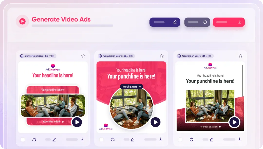 利用 AdCreative.ai 的强大功能生成以转化为重点的视频广告,这是唯一能够为高回报率而设计的 AI 生成的视频,广告活动。