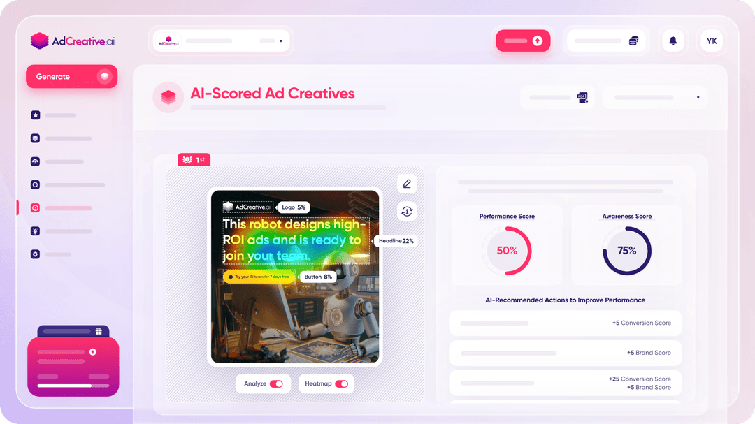 AdCreative.ai 不仅限于内容创建,还使用户能够在推出广告活动之前对其广告创意进行评分。预测性的人工智能功能帮助用户确定哪些创意可能表现更好,从而能够将预算分配到最有效的创意上,并在广告费用上节省超过 20%。