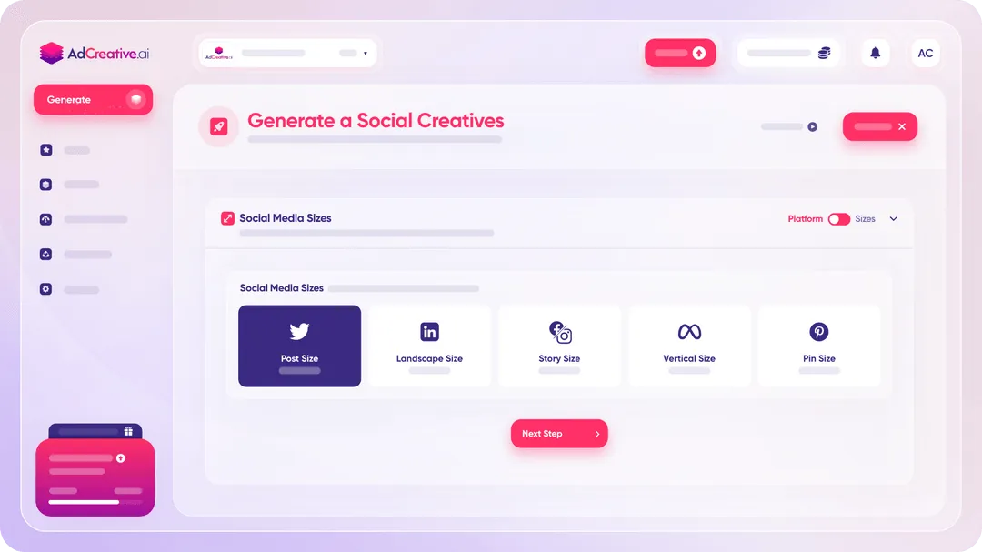 使用 AdCreative.ai 的人工智能驱动方法,轻松创建面向各种平台的社交媒体帖子创意,包括 Facebook、Instagram、LinkedIn、Pinterest、Twitter 等。确保按照每个平台的要求迅速生成完美尺寸和有影响力的创意。