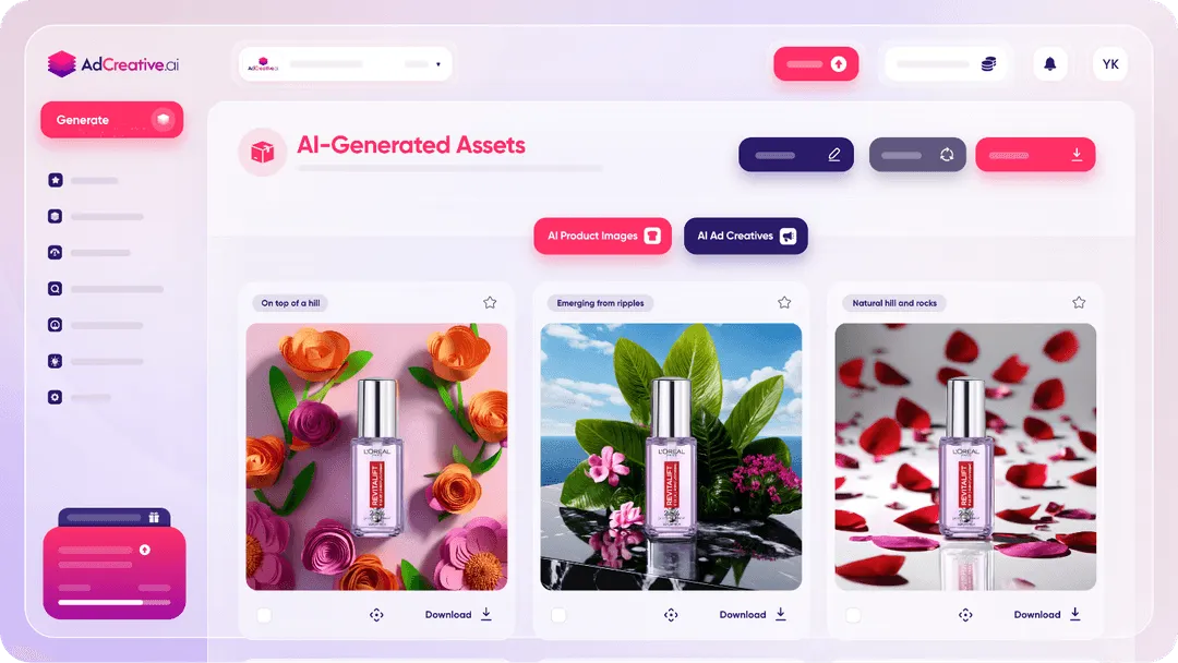 使用 AdCreative.ai 的先进人工智能将产品照片轻松转换为专业级照片。用户只需上传产品图像,生成式人工智能模型将其提升为令人惊叹的广告准备视觉效果。