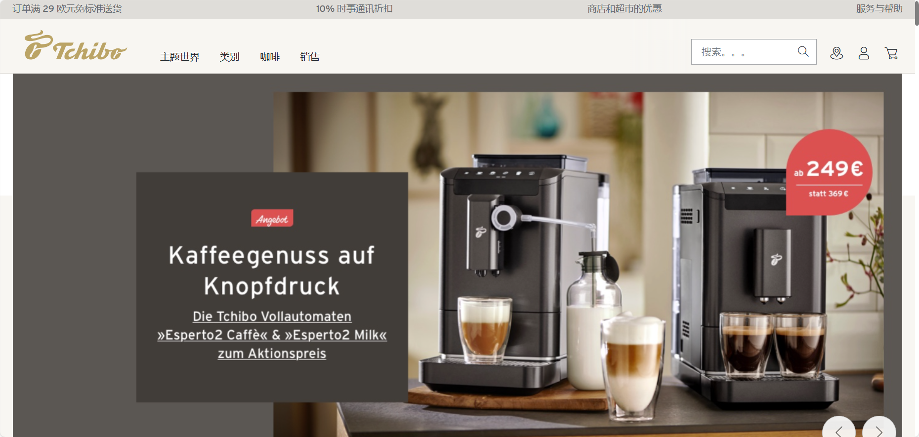 Tchibo网站提供了咖啡、服装、家居用品、电子产品等多品类商品,满足不同消费者的需求。