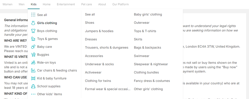 年轻消费者:由于Vinted是一个在线二手交易平台,它吸引了大量年轻消费者,尤其是那些对时尚和潮流感兴趣的年轻人。这些消费者通常对价格敏感,希望在保持时尚的同时控制预算,因此二手市场的商品成为他们的首选。