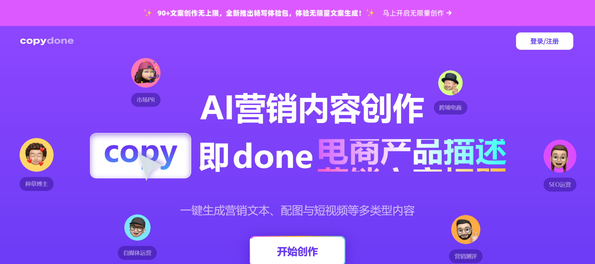 CopyDone智能生成海量营销文案,为用户提供便捷的文案创作服务。其强大的算法能够适应国内及海外各类营销平台的风格,覆盖广泛的产品类型。用户只需一键操作,即可获得丰富的文案以及创作灵感,大幅提高文案创作效率。