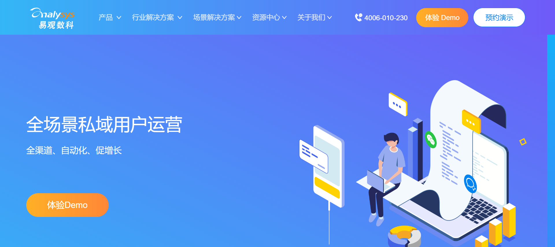 易观数科以全场景私域用户运营为核心,提供全渠道、自动化和促增长的解决方案。通过体验Demo,用户可以深入了解如何在各个场景中实现全面的私域用户运营,从而提升品牌影响力和用户忠诚度。