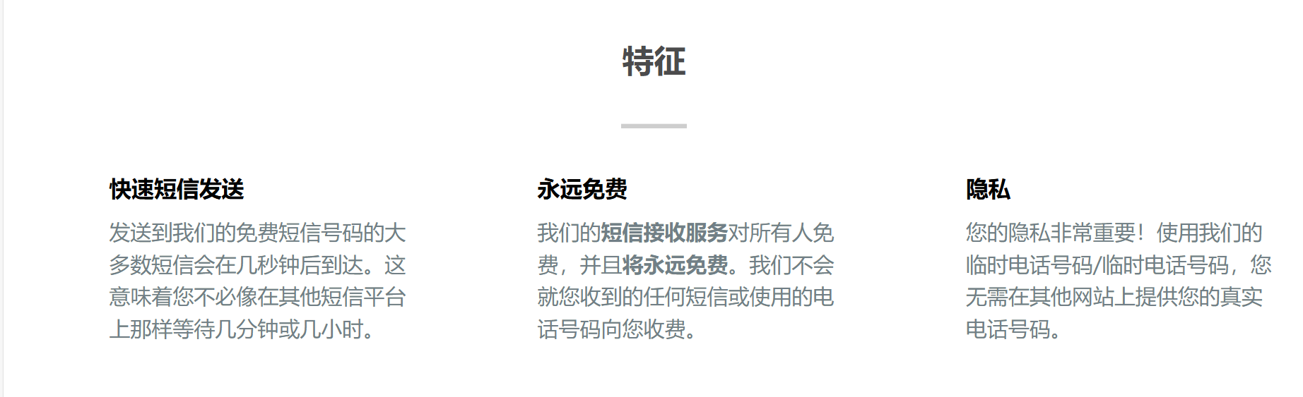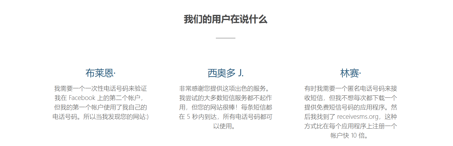 Receive SMS 提供免费服务,用户可以不付费接收短信。